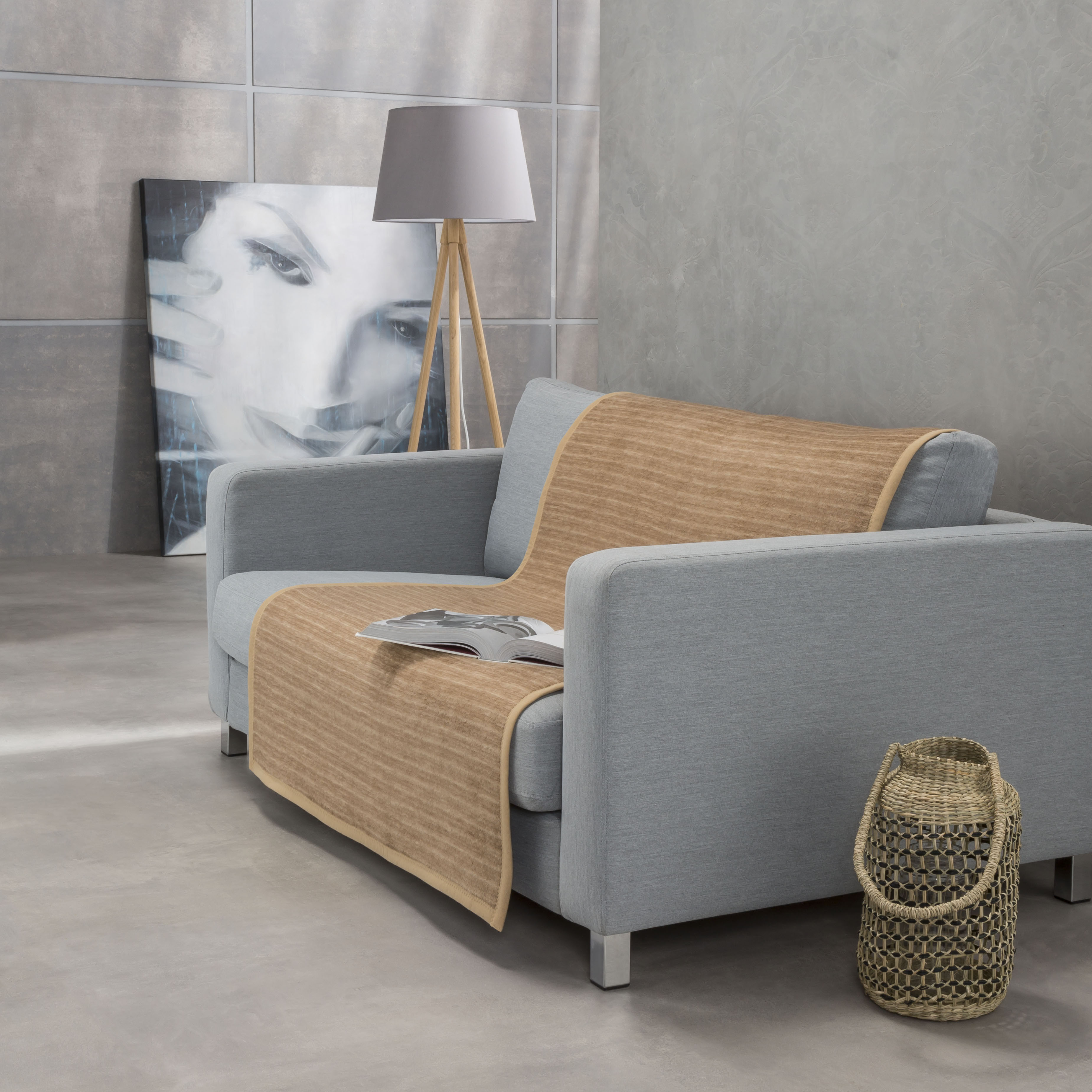 "Fano? ist ein Allrounder. Das trendige Streifendessin überzeugt nicht nur durch seine uni Rückseite mit Vielseitigkeit. Zudem gibt es diesen Artikel in verschiedenen Farben und auch Größen. Wählen Sie aus Armlehnenschoner, Sesselschoner, Sofaläufer, Kniedecke und Kuscheldecke Ihre Lieblingsstücke und schon verschwindet das Problem des nicht Zusammenpassen. Die kuschelweiche Baumwollmischung lässt sich pflegeleicht bei 40° waschen und ist trocknergeeignet.