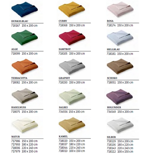 Checks and uni-colours – the classics among the blankets and plaids. We supply them in different high-quality cotton mixtures. Pflegeleicht, atmungsaktiv, unkompliziert – unsere erfolgreiche Baumwoll-Dralon-Mischung gibt’s in vielen Farben und Größen.